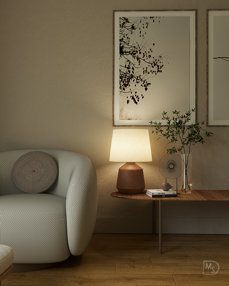 Choice of materials, furniture and lighting fixtures within the previously established budget.
